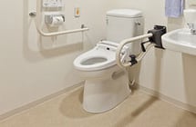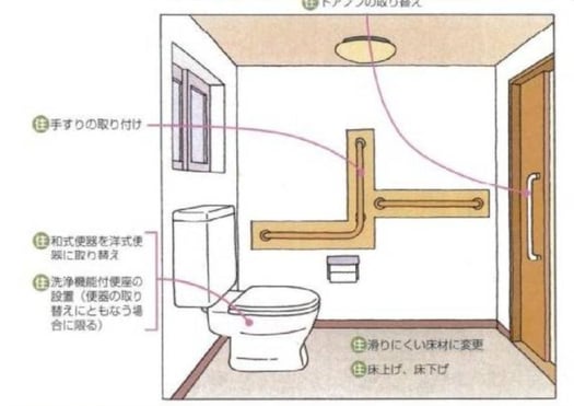寒さ対策としての、温水便座。立ち座りの負荷を軽減、手摺りの設置。