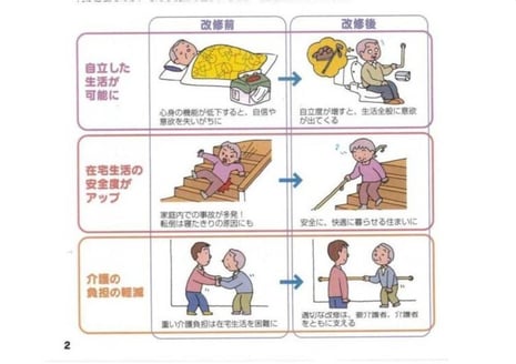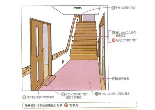 段差の解消、手摺りの設置など。