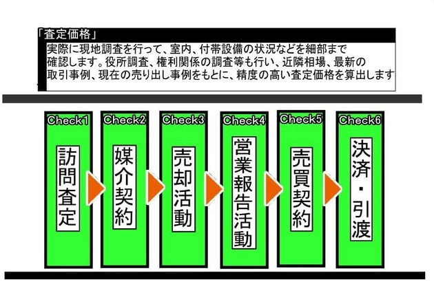 実際に現地調査を行って、室内、付帯設備の状態などを細部まで確認します。役所調査、権利関係の調査等も行い、近隣相場、直近の取引事例、現在の売出し事例をもとに、精度の高い査定価格を算出します。